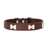 Nini, collier en cuir pour chiens notamment petits chiens, orné de l'os en métal. Existe en plusieurs couleurs.