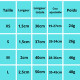 Séchage naturel : Si le collier est mouillé (pluie, baignade…), laissez-le sécher à l’air libre, à l’écart de toute source de chaleur directe (radiateur, soleil fort).