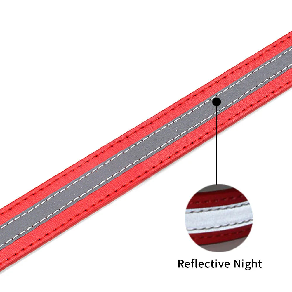 Saphir, collier en cuir avec une bande réfléchissante. Pour petits, moyens et grands chiens. Existe en plusieurs couleurs.