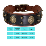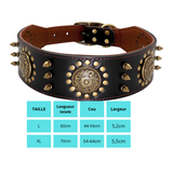 Cesar, collier en cuir véritable de qualité supérieure, large (5cm) et de caractère pour chien de taille moyenne et grande